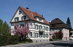 | aus dem DEHIO Vorarlberg 1983: Bundesstraße Nr.64 vorne, hinten Nr.60: Gerichtsgebäude Hofsteig. 3geschossig, 5achsige Fassade mit Rundbogenportal mit altem Schlußstein, 5achsiger Seitenfront. de:Mansarddach . *** in Lauterach (Vorarlberg) , Vorarlberg | Eigenes Werk | böhringer friedrich | Datei:Bundesstr64u60Lauterach.jpg | |
