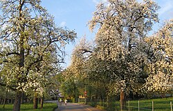 | Hochstamm-Bäume im Ortsteil Rickenbach der Gemeinde Wolfurt, aufgenommen im April 2009. | Eigenes Werk | Bauken77 | Datei:Wiesenweg Wolfurt Ortsteil Rickenbach.jpg |