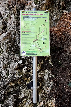 - ↑ Axel Jentzsch-Rabl, Andreas Jentzsch, Dieter Wissekal: Klettersteigführer Österreich. Zweite Auflage, Alpinverlag Jentzsch-Rabl, Bad Häring 2008, S. 375, ISBN 978-3-9500920-8-0, online.