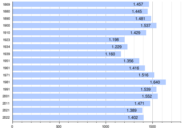 Bevölkerungsentwicklung relativ Index 1869=100: