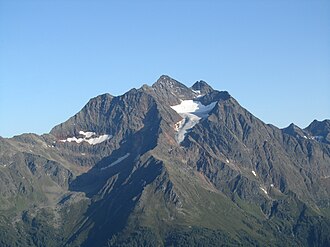 | Der Hohe Riffler in der Verwallgruppe von Nordnordwest, gesehen vom Weg zwischen Kridlonscharte und Kaiserjochhaus. | Eigenes Werk | J. Braukmann Milseburg | Datei:Hoher Riffler.JPG | |