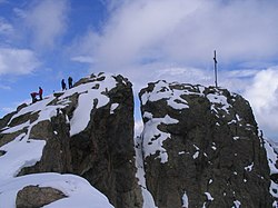 | Übergang vom Südgipfel (links) zum Nordgipfel (rechts mit Kreuz) des Hohen Riffler | Eigenes Werk | Jörg Braukmann | Datei:Hoher Riffler Süd- und Nordgipfel.jpg | |