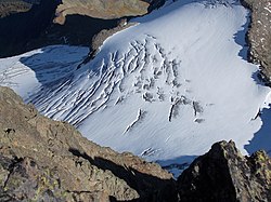 | Der spaltenreiche Flirscher Ferner vom Gipfel gesehen | Eigenes Werk | 32-Fuß-Freak | Datei:Spalten im Flirscher Ferner.jpg | |