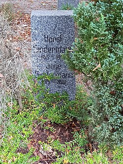 | Das Grab des deutschen Politikers Horst Sndermann und seiner Ehefrau Inge auf dem Zentralfriedhof Friedrichsfelde in Berlin. | Eigenes Werk | Harvey Kneeslapper | Datei:Berlin Friedrichsfelde Zentralfriedhof (VdN-Ehrenhain) - Sindermann, Horst.jpg | |