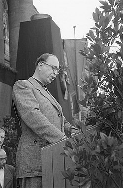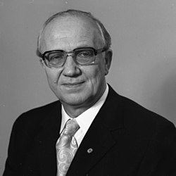 Horst Herbert[1] Sindermann (* 5. September 1915 in Dresden; † 20. April 1990 in Berlin ) war ein deutscher Politiker der Sozialistischen Einheitspartei Deutschlands (SED). Von 1973 bis 1976 war er Vorsitzender des Ministerrates der DDR, von 1976 bis 1989 Präsident der Volkskammer, ferner Mitglied des Politbüros der SED. Als Leiter der Abteilung Agitation beim Zentralkomitee der SED erfand Sindermann 1961 die Bezeichnung „antifaschistischer Schutzwall“ für die Berliner Mauer.[2]