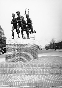 - 1928: Läufergruppe auf dem Scholzplatz in Berlin-Westend, 1943 eingeschmolzen