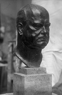 | Es folgt die historische Originalbeschreibung , die das Bundesarchiv aus dokumentarischen Gründen übernommen hat. Diese kann allerdings fehlerhaft, tendenziös, überholt oder politisch extrem sein. Die einzigste Büste des verstorbenen Reichsaussenministers Dr. Stresemann von Prof. Hugo Lederer soll vom Staat angekauft werden. Die einzigste Büste Dr. Stresemanns von Prof. Hugo Lederer. | Dieses Bild wurde im Rahmen einer Kooperation zwischen dem deutschen Bundesarchiv und Wikimedia Deutschland aus dem deutschen Bundesarchiv für Wikimedia Commons zur Verfügung gestellt. Das deutsche Bundesarchiv gewährleistet eine authentische Bildüberlieferung nur durch die Originale (Negative und/oder Positive), bzw. die Digitalisate der Originale im Rahmen des Digitalen Bildarchivs . | Unbekannt Unknown | Datei:Bundesarchiv Bild 102-08657, Büste Gustav Stresemanns.jpg | |