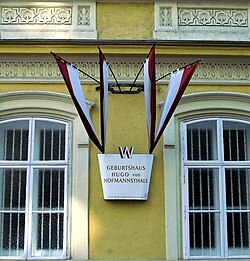 | Geburtshaus von Hugo von Hofmannsthal im 3. Bezirk in Wien, Salesianergasse 12. | Eigenes Werk | Werckmeister | Datei:H. von Hofmannsthal2.jpg | |