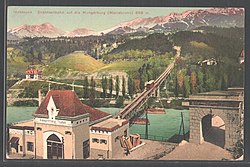 | Wagen der alten Hungerburgbahn (1906-2005) auf der Innbrücke. | Eigenes Werk , gescannt von Papierbild | Hafelekar | Datei:Hungerburgbahn-alt-Innbrücke.jpg |