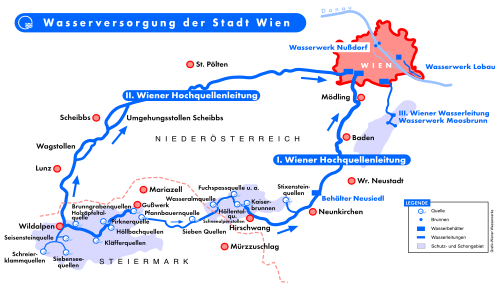 - ↑ Die „Sieben Quellen“ fließen für Wien. Feierlicher Durchschlag des längsten Wasserüberleitungsstollen Europas. ( vom 21. Februar 2014 im Internet Archive) Bei: Wien.gv.at. 8. Juli 1968, abgerufen am 10. Oktober 2009.