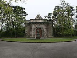 | Wien , 15. Bezirk Rudolfsheim-Fünfhaus : Die Alte Schieberkammer des früheren Wasserbehälters auf der Schmelz ( Meiselmarkt ). | Eigenes Werk | Manfred Werner - Tsui | Datei:Alte Schieberkammer Schmelz Wien 2012 a.jpg | |