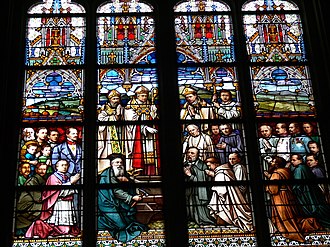 | Linzer Dom ( Oberösterreich ). Neogotisches Buntglasfenster mit Darstellung der Grundsteinlegung des Linzer Doms durch Bischof Rudigier 1862. | Eigenes Werk | Wolfgang Sauber | Datei:Linzer Dom - Fenster - Grundsteinlegung Gesamt.jpg | |