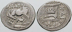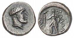 | Bronze coin of King Ballaios of Epirus. Head of Ballaios. Rv.Artemis holding torch, inscription: ΒΑΛΛΑΙΟΥ. | http://www.cngcoins.com/Coin.aspx?CoinID=112346 | CNG , (uploaded by Odysses ) | Datei:Ballaios Epirus.jpg | |