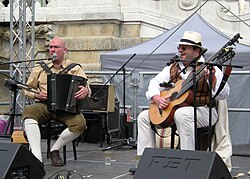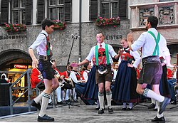 | '16er Buam' performance at Vienna's annual Stadtfest, 2009, in 'Burggarten'. Note: Camera timesetting is UTC, which is local time -2. | Eigenes Werk | User:W. | Datei:16er Buam 20090426 205.jpg | |