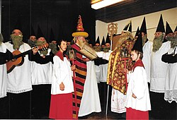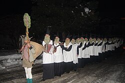 | Staner Anklöpfeln, am Bild der Hohe Priester, Bacchus und die Leviten | Eigenes Werk | Helmut Gschwentner | Datei:Ankloepfeln Stans Hoher Priester Bacchus Leviten 2000.jpg | |