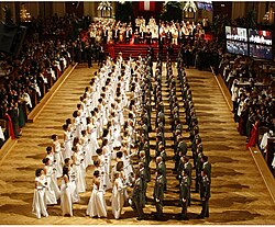 Niederösterreich | Seit 1957 finden am 15. August wechselnd in 54 Wallfahrtsorten des Mostviertels die Goldhaubenwallfahrt statt. An der jährlich stattfindenden Wallfahrt der 25 Goldhauben-, Kopftuch-, Perlhauben- und Hammerherrengruppen beteiligen sich etwa 1000 Wallfahrer aus dem ganzen Mostviertel. Am Hohen Frauentag ziehen die Teilnehmer, in Trachten gekleidet, begleitet von Musikkapellen und Chören, gemeinsam zum Festgottesdienst in die Kirche ein. Während des Festgottesdienstes wird gedankt und für eine friedvolle Zukunft und für das persönliche und familiäre Wohlergehen gebeten. Am Ende des Festgottesdienstes werden Kräuterbüschel und die Wallfahrerkerzen gesegnet.[25] Termin: jährlich am 15. August nächster Termin: 15. August 2025 |