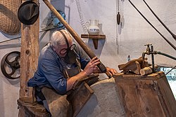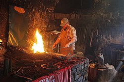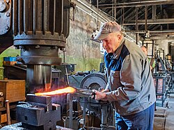 alle Bundesländer | Das Schmieden von Metallen ist bereits im alten Ägypten praktiziert worden, in Europa sind erste Schmiedeerzeugnisse aus der Hallstattzeit (um 1000 v. Chr.) bekannt. Geschmiedete Metallobjekte findet man seither in vielen Teilen der Gesellschaft, u. a. in der Baukunst, als Schmuck und sakrale Objekte, als Alltagsgegenstände und Werkzeuge. In Österreich existieren noch etwa hundert Handwerksbetriebe, die die Kunst des Freihandschmiedens praktizieren. Dazu wird nach einer Skizze oder mit Hilfe einer Schablone das passende Material vorgerichtet. Im Schmiedefeuer erhitzt, wird das Metall mit Hilfe von Werkzeugen, wie Stöckel und Hämmern und verschiedenen Schmiedeverfahren zum Endprodukt geformt. Freihandschmieden ist ein Lehrberuf, die dazu erforderlichen Techniken werden durch lange Berufserfahrung erlernt und an die junge Generation weitergegeben. Jeder Schmiedemeister erhält auch heute noch sein eigenes Punzzeichen. Auf zahlreichen Märkten und Volksfesten demonstrieren die Handwerker im Rahmen von Schauvorführungen die traditionelle Handwerkstechnik.[25] | ||