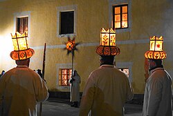 Die vermutlich aus dem 16. Jahrhundert stammende Tradition des Heiligenbluter Sternsingens hat sich bis heute zum größten Teil in seiner ursprünglichen Form erhalten. Elemente wie das Sternlied oder das Segnen des Hauses mittels Anbringung des Segensspruches Christus Mansionem Benedicat (CMB) über der Haustüre sind bis heute ein fixer Bestandteil dieser Tradition. Termin: In der Nacht vom 5. zum 6. Jänner nächster Termin: 5. Jänner 2026 |