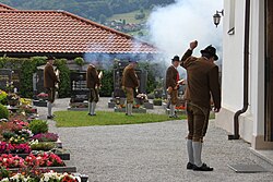 Salzburg | Das Festschützenwesen ist Bestandteil des Brauchtums im gesamten Land Salzburg. Obwohl sich vor allem das zum Schießen verwendete Gerät von Ort zu Ort massiv unterscheidet – der Bogen reicht von traditionellen Holzgewehren bis hin zu Prangerstutzen und Böllern – sind die Aufgaben, die die Schützenvereine in den Gemeinden wahrnehmen, sehr ähnlich. | |