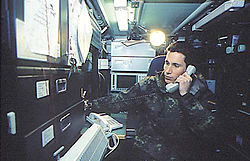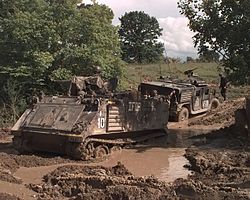 | Scope and content: The Donji Bratinia Bridge, just north of the city of Gorazde, is re-opened after having been shut down after its' destruction by North Atlantic Treaty Organization air strikes. The new bridge is a British Mabey Johnson bridge assembled by a Battalion of German Engineers belonging and supporting the Implementation Force (IFOR) in Bosnia as part of Operation JOINT ENDEAVOR. Lieutenant General Michael Walker, Commander of the Allied Command Europe Rapid Reaction Corps, with the assistance of a Bosnian interpreter and a German interpreter, speaks to the German Army Engineers and the local Bosnian population gathered there to witness the official opening ceremony. Beginning in December, 1995, US and allied nations deployed peacekeeping forces to Bosnia in support of JOINT ENDEAVOR. The provision of a secure environment is at the heart of the reconstruction effort in Bosnia. | U.S. National Archives and Records Administration | SGT Jean-Marc Schaible, USA | Datei:DA-SD-03-00283 German Engineers (IFOR) in Bosnia near Gorazde as part of Operation Joint Endeavor.jpeg | |