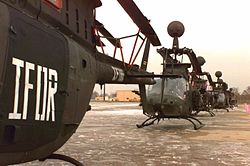 - Leitverband des ersten Kontingents bis Mai 1996 war das Heeresfliegerregiment 10 in Faßberg mit ca. 380 Soldaten und ausgerüstet mit Transporthubschraubern vom Typ CH-53 aus den Standorten Rheine, Laupheim und Mendig und Bell UH-1D aus den Standorten Faßberg und Niederstetten sowie eine Sicherungskompanie des Gebirgsjägerbataillons 232/233 ausgerüstet mit Transportpanzer Fuchs und Waffenträger Wiesel.