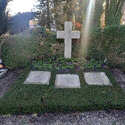 Das Grab der deutschen Schriftstellerin Ina Seidel (Mitte) und ihres Ehemannes, des Theologen und evangelischen Pfarrers Heinrich Wolfgang Seidel (rechts) auf dem Neuen Friedhof Tutzing. Links das Grab von Emmy Seidel (1861-1945), Mutter der Schriftstellerin. | Eigenes Werk | Harvey Kneeslapper | Datei:Grab Ina Seidel.jpg |
