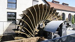 | Kleinwasserkraftwerk Stadtgarten - Inatura, Dornbirn - Zuppinger-Rad. | Eigenes Werk | Asurnipal | Datei:Inatura-Wasserrad-3.JPG |