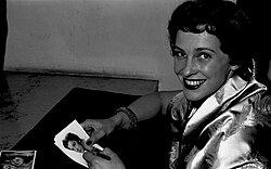 | Die Schauspielerin Inge Egger bei einer Autogrammstunde in Frankfurt am Main anlässlich des Erscheinens des Films "Musik, Musik und nur Musik" | Eigenes Werk | Kurt Liese Harald-Reportagen | Datei:IngeEgger1955.jpg |