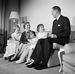 | Collectie / Archief : Fotocollectie Van de Poll Reportage / Serie : Gezinsfoto's van de Deense koninklijke familie Beschrijving : Het Deense Koninklijk gezin in hun woning in paleis Brockdorff in Slot Amalienborg Datum : maart 1954 Locatie : Denemarken, Kopenhagen Trefwoorden : gezinnen, interieurs, koningen, koninginnen, prinsessen Persoonsnaam : Anne Marie (prinses Denemarken), Benedikte (prinses Denemarken), Frederik IX (koning Denemarken), Ingrid (koningin Denemarken), Margrethe (kroonprinses Denemarken) Fotograaf : Poll, Willem van de, onbekend Auteursrechthebbende : Nationaal Archief Materiaalsoort : Negatief (zwart/wit) Nummer archiefinventaris : bekijk toegang 2.24.14.02 Bestanddeelnummer : 252-8587 | http://proxy.handle.net/10648/aebfe6ca-d0b4-102d-bcf8-003048976d84 | Willem van de Poll | Datei:Het Deense Koninklijk gezin in hun woning in paleis Brockdorff in Slot Amalienbo, Bestanddeelnr 252-8587.jpg | |