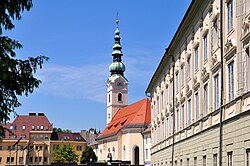 | Heiligengeistkirche und Landhaus am Heiligengeistplatz, Klagenfurt , Kärnten , Österreich , EU | Eigenes Werk | Johann Jaritz | Datei:Klagenfurt Heiligengeistkirche und Landhaus 14072009 41.jpg | |