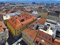 | Blick vom Balkon des Stadtpfarrturms auf das Palais Rosenberg, Altes Rathaus am Alten Platz 1, Innere Stadt, Klagenfurt , Kärnten , Österreich , EU | Eigenes Werk | Johann Jaritz | Datei:Klagenfurt Innere Stadt Alter Platz 1 Altes Rathaus 14072009 12.jpg | |