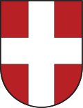 Das Wappen des 1. Bezirks zeigt ein weißes Kreuz auf rotem Grund. Es ist mit dem Brustschild bzw. der einfacheren Form des Wiener Wappens identisch, die seit dem Mittelalter verwendet wird, wird jedoch stilistisch in einfacherer Form verwendet als im heutigen Stadtwappen.