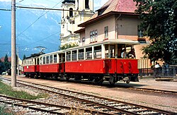 | Stubaitalbahn Triebwagen (vermutlich Nr. 3) ist mit einem Zug am 2. Juli 1972 aus Fulpmes in Innsbruck Stubaitalbahnhof angekommen. | Eigenes Werk | Tokkyuu | Datei:TW unbek Innsbruck 1972-07-02 541.jpg |