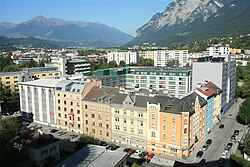 | Überblick von oben auf die Gebäude des ISH | Internationales Studentenhaus Innsbruck | Charly Lair | Datei:ISH - Gesamtansicht.jpg | |