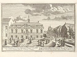 | Prospect des neuen Spitals des H. Johann von Nepomuck auf der Landstraß . Kupferstich aus Kleiner : Das florirende vermehrte Wien... . Augsburg, J. A. Pfeffel, 1733. Links das als Nepomucenispital bekannte Armenhaus, das später zum Invalidenhaus umgebaut wurde; rechts die Landstraßer Hauptstraße mit der Elisabethinenkirche . | http://www.dasmuseen.net/Wien/BezMus03/page.asp/872.htm | Salomon Kleiner | Datei:Salomon Kleiner Nepomucenispital.jpg |