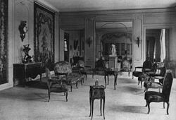 | The Drawing Room of Comte Isaac de Camondo in his Apartment at Avenue des Champs-Élysées No. 82 (c. 1910). The furniture is original from the 18th Century, The marble-clock before the mirror is called Trois Grâces by Étienne Maurice Falconet (c. 1770), today in the Louvre. | Jean-Marie del Moral: The Camondo Legacy | Autor/-in unbekannt Unknown author | Datei:Drawing Room - Camondo Apartment - 82 Avenue des Champs-Elysees.jpg | |