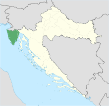 Der kroatische Teil Istriens bildet – mit Ausnahme des Gebietes um die Stadt Opatija, das zur Gespanschaft (Bezirk, Komitat) Primorje-Gorski kotar gehört (das alte Liburnien) – die Gespanschaft Istrien. Diese umfasst ein Gebiet von 2.813 km². Verwaltungssitz der Gespanschaft Istrien ist die im Landesinneren gelegene Stadt Pazin – Pisino – Mitterburg.