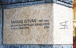 | Commemorative plaque to Mr. István Farkas (1887-1944) Hungarian painter and publishing house’s owner. It is affixed at the entrance of his former house. (Budapest, District VI, Andrássy Avenue Nr 16). | Eigenes Werk | Fekist | Datei:István Farkas plaque Bp06 Andrássy16.jpg | |