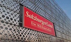| Gebäudefassade des Salzburger Milchhofs (Alpenmilch Salzburg) mit dem bis 2013 angebrachten Logo der Produkte in Salzburg- Itzling . Danach wurde die Tafel durch eine mit dem neuen Produktlogo des Unternehmens ersetzt. | Eigenes Werk | Eweht | Datei:Milchhof Salzburg Fassade.jpg | |