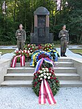 Kranzniederlegung durch Bataillonskommandant Oberst Thomas Erkinger auf dem sowjetischen Soldatenfriedhof in Oberwart.