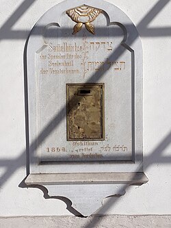 | Relief am Friedhof-Pförtnerhaus des Jüdischen Friedhofs in Graz / Wetzelsdorf von 1868 | Eigenes Werk | Grätzel33 | Datei:Sammelbüchse.jpg | |