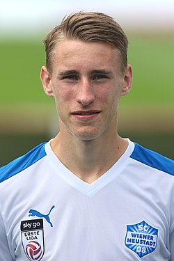| SC Wiener Neustadt Kadervorstellung Sommer 2017. – Das Bild zeigt Jürgen Bauer. | Eigenes Werk | Steindy ( Diskussion ) 10:32, 30 May 2018 (UTC) | Datei:SC Wiener Neustadt squad presentation 2017-18 – Jürgen Bauer (1).jpg | |