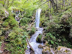 Die nordöstlich des Ortes gelegene Klamm ist nur über mehrere Leitern erklimmbar, wofür man aber mit direkten Blicken in die Höhlen der Kalktuffquellen und abwechslungsreicher Vegetation, etwa Hirschzungenfarn, belohnt wird.[4]