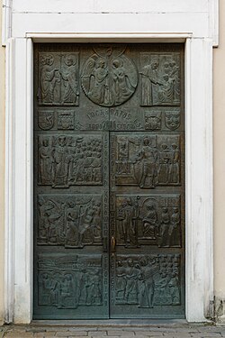 | Bronzeportal des Domes zu St. Pölten (Niederösterreich) von Prof. Jakob Kopp (2000) | Eigenes Werk | Uoaei1 | Datei:St. Pölten Dom Bronzeportal 01.JPG |