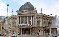 | Das Volkstheater ist ein 1889 nach Entwürfen von Hermann Helmer und Ferdinand Fellner erbautes Theater im 7. Wiener Gemeindebezirk Neubau am Arthur-Schnitzler-Platz 1. Es befindet sich gegenüber dem Naturhistorischen Museum in Nachbarschaft des MuseumsQuartiers und des Spittelbergs und ist eines der größten Theater im deutschsprachigen Raum. | Eigenes Werk | Arquus | Datei:Volkstheater Haupteingang.jpg |