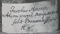 7/8 violin from 1658 by Jakob Stainer (Absam Tirol) | Eigenes Werk | User:Frinck51 | Datei:Stainer.jpg | |