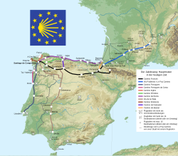 Einen Überblick über die ausgeschilderten Pilgerrouten nach Santiago de Compostela bietet der Artikel Wege der Jakobspilger.