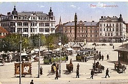 | Jakominiplatz in Graz | Correspondenz-Karte datiert 1911,Privatbesitz | Kartenverlag: Ludwig Strohschneider, Graz, Nr. 184/1911 | Datei:Jakominiplatz.jpg | |