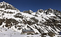 | Jamtalhütte im Futschöltal, hinten rechts die drei Getschnerspitzen und die Getschnerscharte, links Vorderer Satzgrat | Eigenes Werk | Stefan.straub | Datei:Jamtalhütte winter.jpg | |