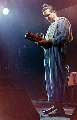 | Auftritt von Jango Edwards mit Dynamitstangen und Zeitschaltuhr | Eigenes Werk | Axel Hindemith | Datei:Jango Edwards 1986.jpg |